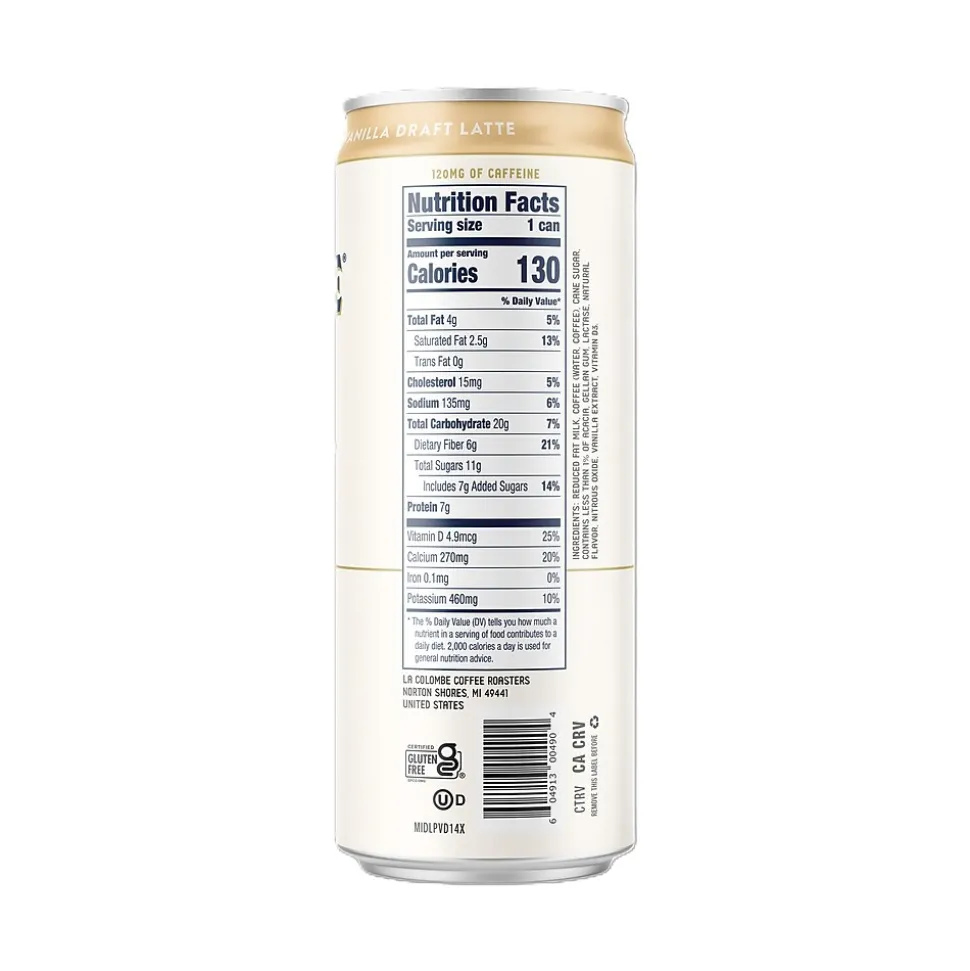 Experience the full taste and texture of a true vanilla latte, complete with a frothy layer of silky foam. La Colombe Draft Latte vanilla coffee is made with whole, real ingredients, such as nutrient-rich milk, cold brew, and natural vanilla. It’s minimally sweetened with just a pinch of cane sugar, for a better, healthier morning jolt. Best enjoyed cold.