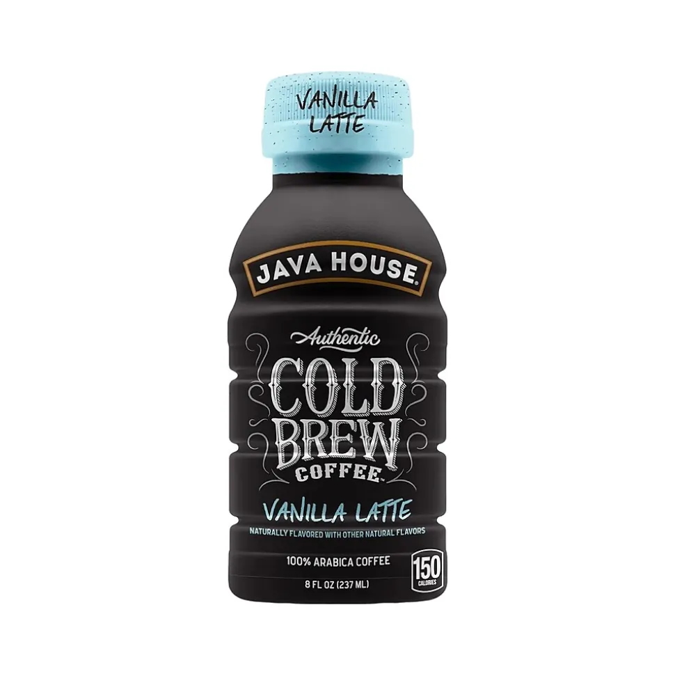 Get up and go. You called for ready-to-go bottles and Java House answered. This 8 fl. oz. Vanilla Latte cold brew bottle is convenient, delicious, and packs a caffeinated punch. Authentically crafted cold brew, with 100% arabica coffee and natural ingredients.