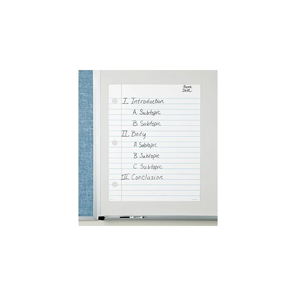 Learning Resources® Magnetic notebook paper has durable write on/wipe off surface that works with wet erase markers and measures 28″ x 22″. Notebook paper sticks firmly to magnetic boards and is used model sentences, letters or note takings.
