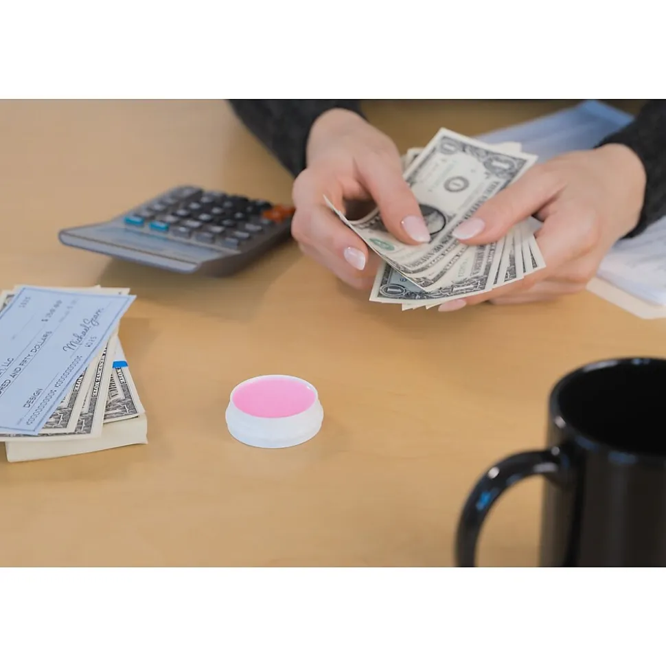 - Fingertip moistener for quick, easy, and accurate counting and sorting