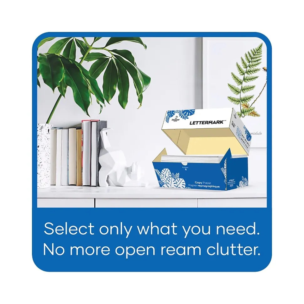The Lettermark storage pack was created with the small business and home office printing needs in mind. Filled with Lettermark copy paper, this 1520 loose sheet pack has the benefit of easy access to the paper, reduced waste, ease of portability, a small footprint for limited storage spaces, and a stylish design. Lettermark is North American made and delivers exceptional everyday performance, featuring ColorLok technology and a 99.99% jam-free promise.