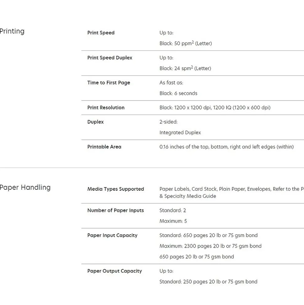 - Print Speed: Up to 50 ppm