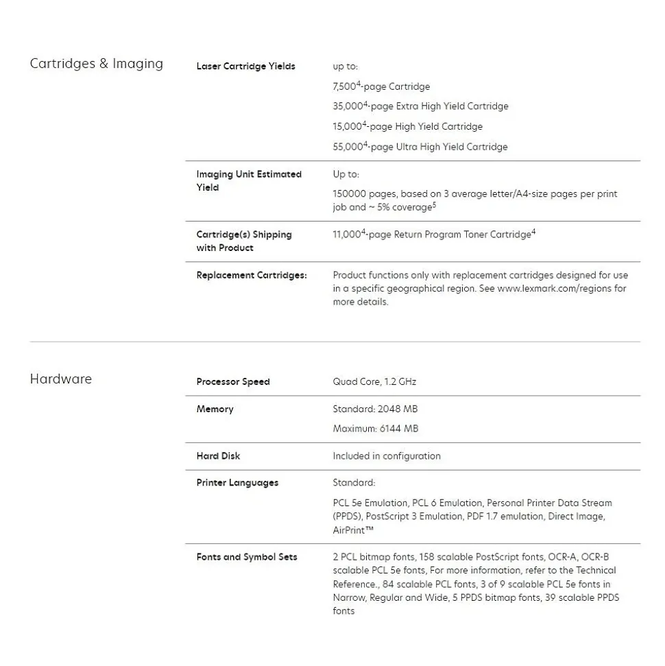 - With access to standard input capacity of up to 1200 sheets (expandable to 2300), replacement toner cartridges that go as high as 55,000 pages, long-life imaging unit and fuser that may never need replacement, you’ll spend more time printing and less time doing maintenance.