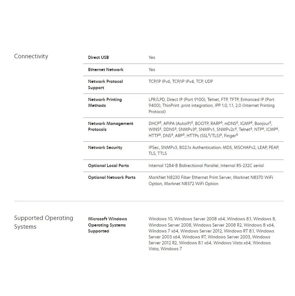 | Printer Connectivity Refers to a device’s capability to connect to Wi-Fi networks, either wirelessly or though an ethernet cable. | Yes |