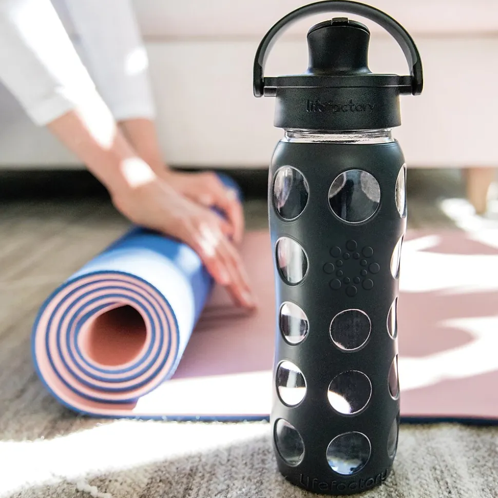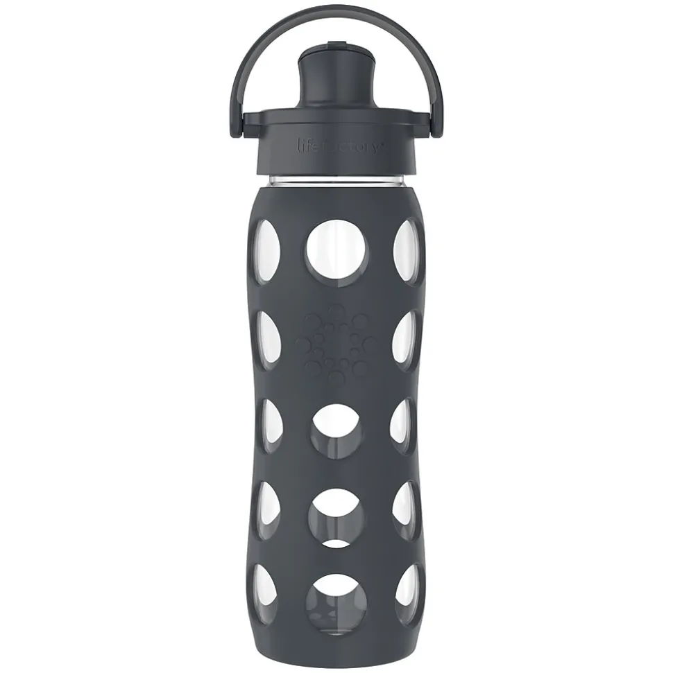 The Lifefactory 22-Oz. Glass Bottle with Active Flip Cap in Carbon is your up-for-anything bottle. Head out for a quick run to the store, to school, or to the gym and hydrate in style. The Active Flip Cap offers a high flow rate for rapid replenishment, so all you need to do is tip and sip. It’s ideal for high-intensity activities, but just like you, it’s comfortable dialing things down. Plus the pivoting handle makes it easy to take with you.