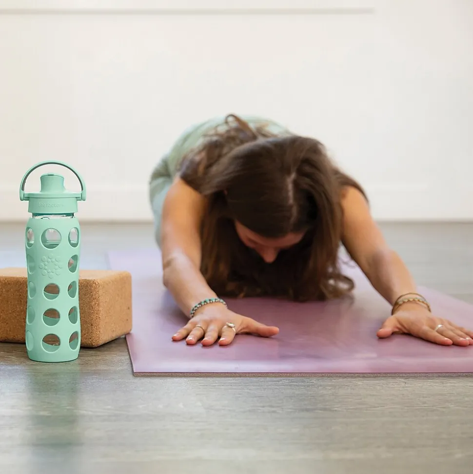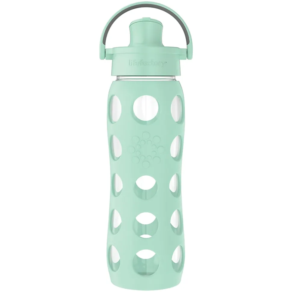 The Lifefactory 22-Oz. Glass Bottle with Active Flip Cap in Mint is your up-for-anything bottle. Head out for a quick run to the store, to school, or to the gym and hydrate in style. The Active Flip Cap offers a high flow rate for rapid replenishment, so all you need to do is tip and sip. It’s ideal for high-intensity activities, but just like you, it’s comfortable dialing things down. Plus the pivoting handle makes it easy to take with you.