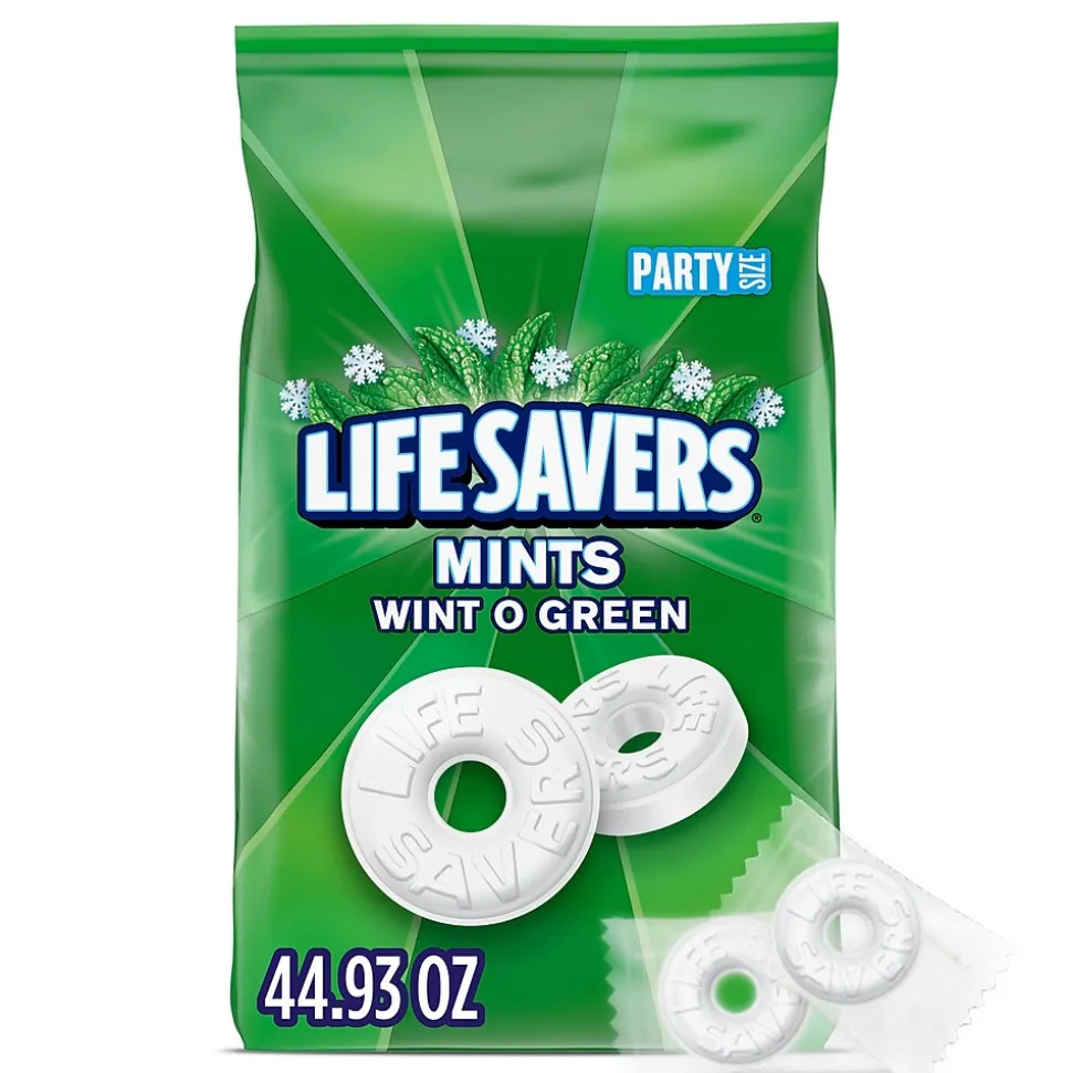 - Contains one (1) 44.93-ounce party size bag of LIFE SAVERS Wint O Green Mint Candy