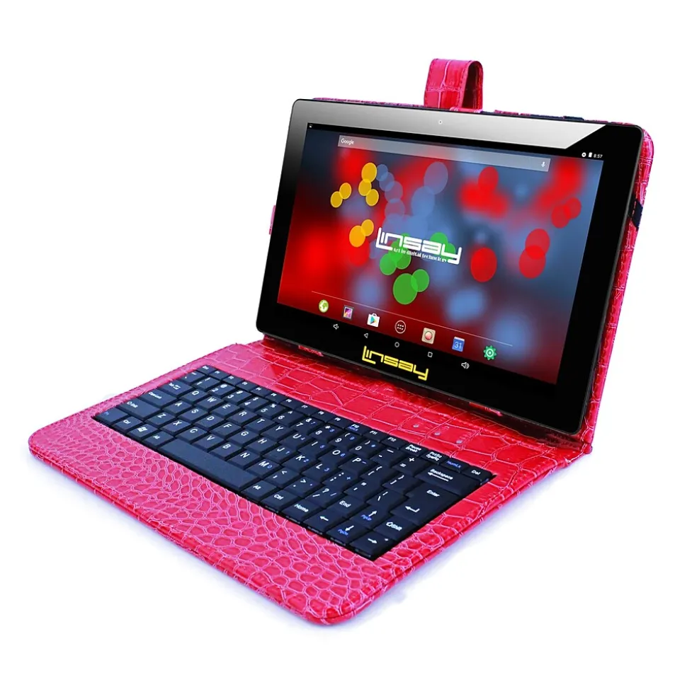LINSAY F10 Series 10.1″ Tablet, WiFi, 2GB RAM, 64GB , Android 13, Black w/Red Crocodile Keyboard (F10XIPSBKCOREDW)