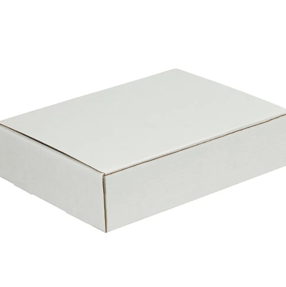 12″ x 9″ x 2″ Literature Mailers. The perfect fit for your literature piece without the expense of a custom carton. Assembles in seconds without tape, glue or staples. Strong 200#/ECT-32-B oyster white corrugated construction. Ships and stores flat to save space.