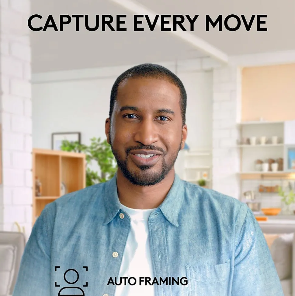 - Look natural and confident with full HD resolution, auto-framing, and auto light correction