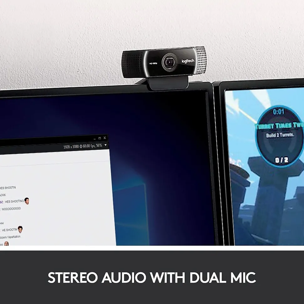 Live stream with outstanding clarity with the Logitech C922 webcam, designed and built for streamers who take their game seriously. With a choice of 30 fps at 1080p or the hyperfast 60 fps at 720p, you can record or go live with vibrant, true-to-life video on channels like Twitch and YouTube. Broadcast masterfully with reliable no-drop audio, autofocus, and a 78° diagonal field of view. Two omni-directional microphones accurately capture your voice from multiple angles for greater nuance. Go pro with features for XSplit, or customize your stream with Logitech Capture.