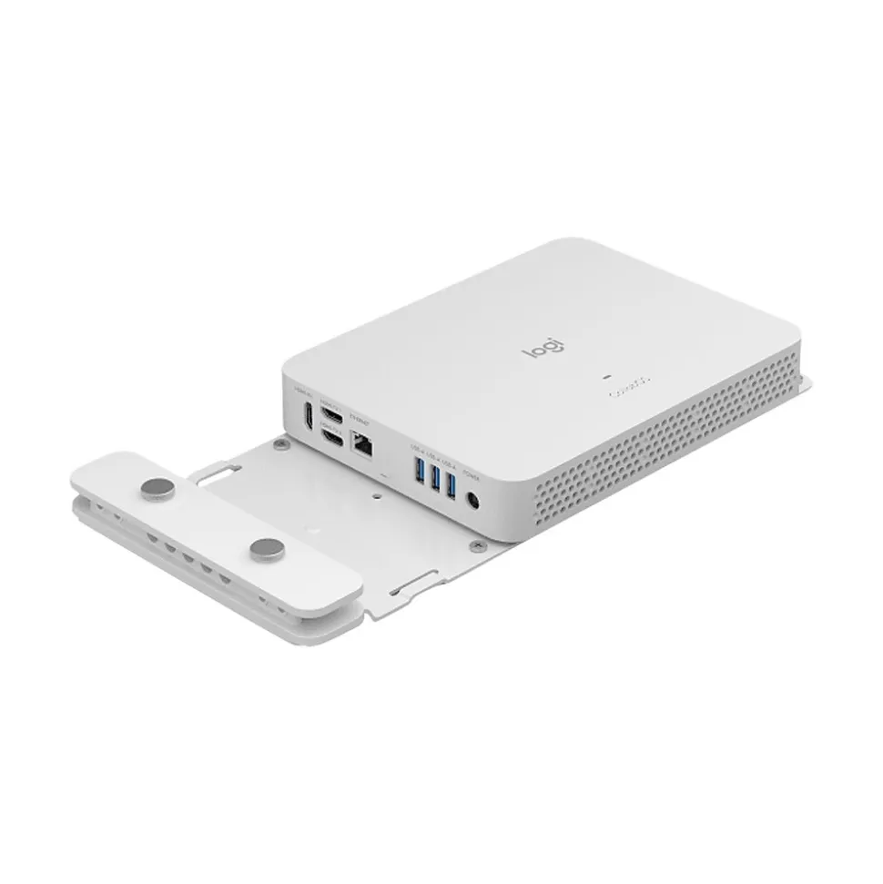 Logitech Compute Mount is designed for meeting rooms equipped with a Logitech RoomMate video conferencing appliance, or a compute such as a Google Meet compute system or Intel NUC. Use Compute Mount to mount devices in a clean and secure way so they remain out of sight and out of harm’s way. Keep connections tight and organized with the cable retention clamp. Designed for discreet installation behind displays, inside cabinets, or with a cart, Compute Mount is a great fit for meeting rooms, retail locations, trade show displays, and more.