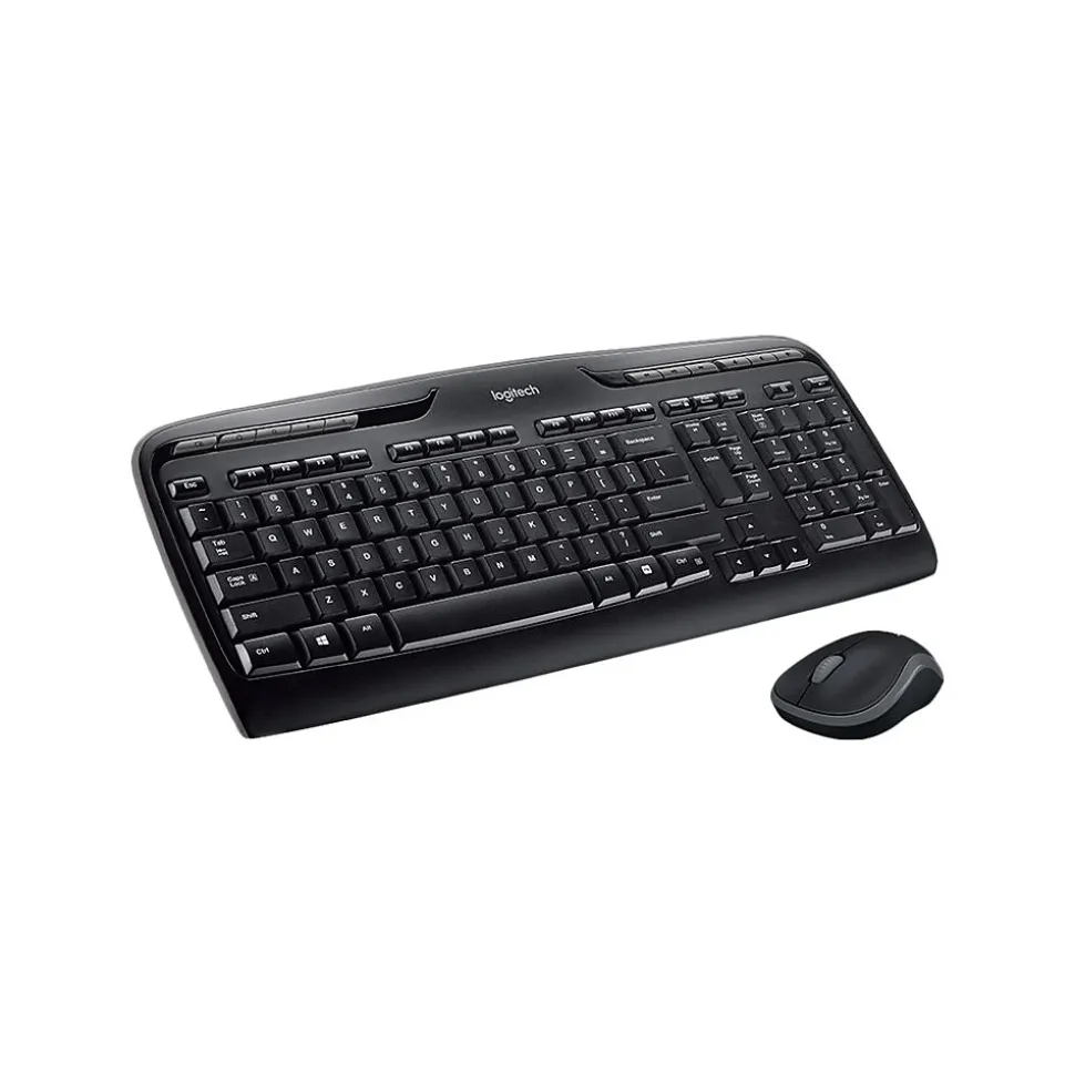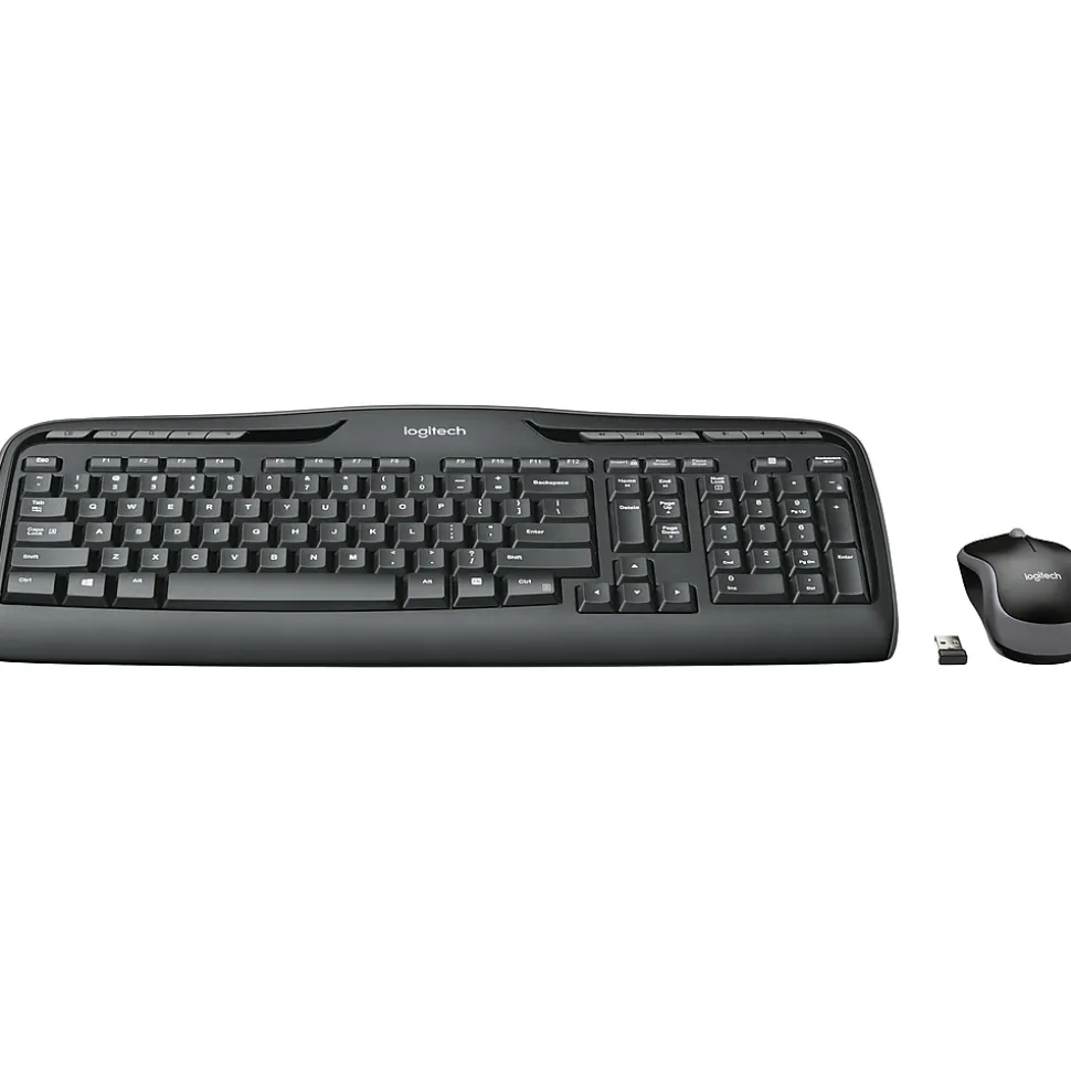 Enjoy the durable, comfortable design of this full-size wireless multimedia keyboard and optical mouse. The wireless design saves you from having to untangle cords and offers high freedom of movement, while the hotkeys for volume control, pause, play and a host of other functions provide convenience. With USB connections, this keyboard and mouse are easy to plug in and use right away, while the black color design provides a professional appearance and comfort. The optical mouse tracks accurately on almost any opaque hard surface. This Logitech wireless multimedia keyboard and optical mouse combo features a long battery life that minimizes the frequency of required battery replacement.