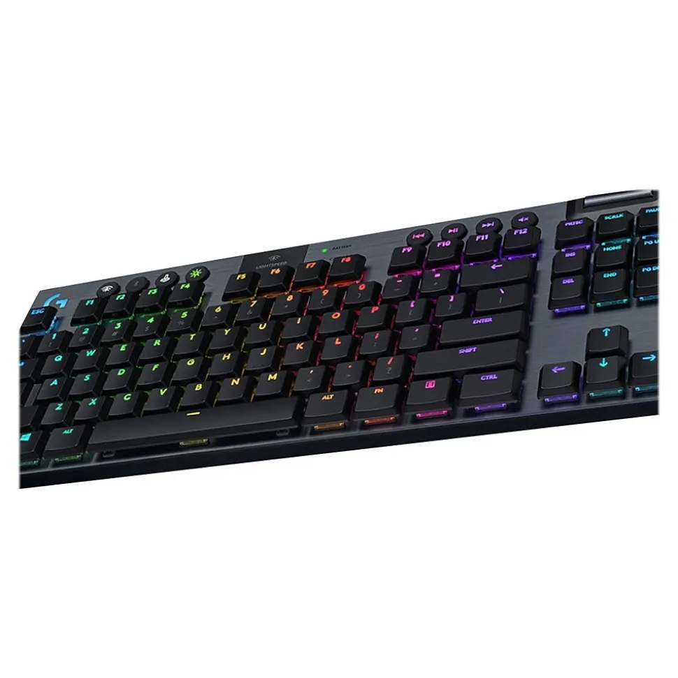 G915 TKL is a wireless mechanical gaming keyboard with three selections of low-profile GL switches and pro-grade 1 ms LIGHTSPEED wireless. Capable of delivering 40 hours of non-stop gaming on a full charge. Fully customizable per-key, LIGHTSYNC RGB technology also reacts to in-game action, audio and screen color as you choose. With a sleek, impossibly thin yet durable and sturdy design, G915 TKL brings gamers to a higher dimension of play. Dedicated volume wheel and media keys give you fast, easy control over video, audio, and streaming.