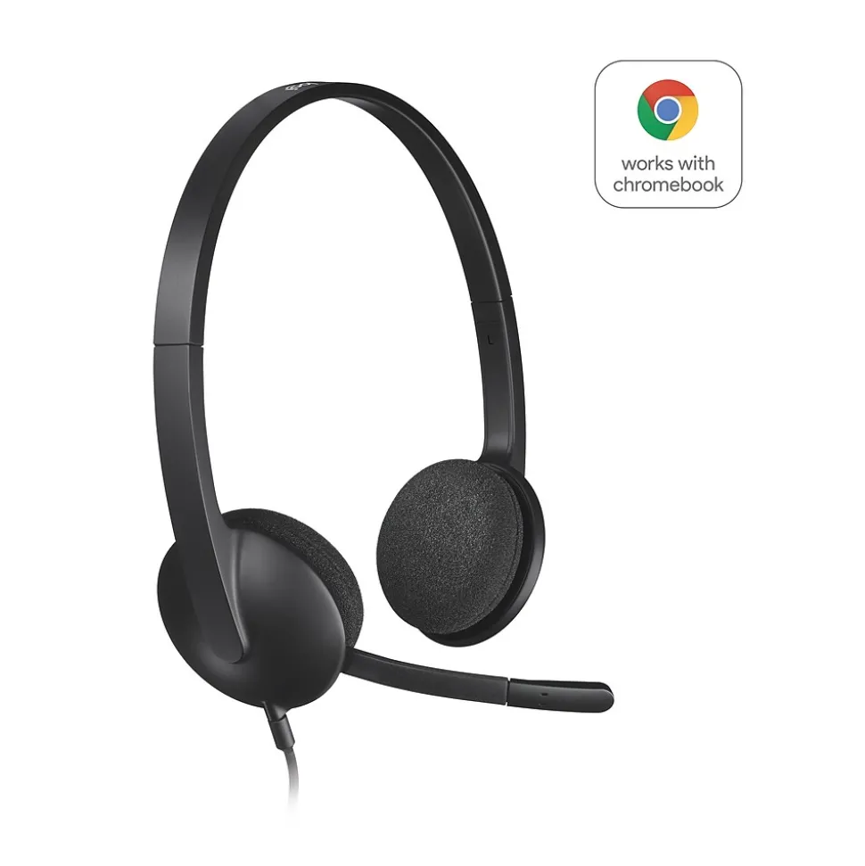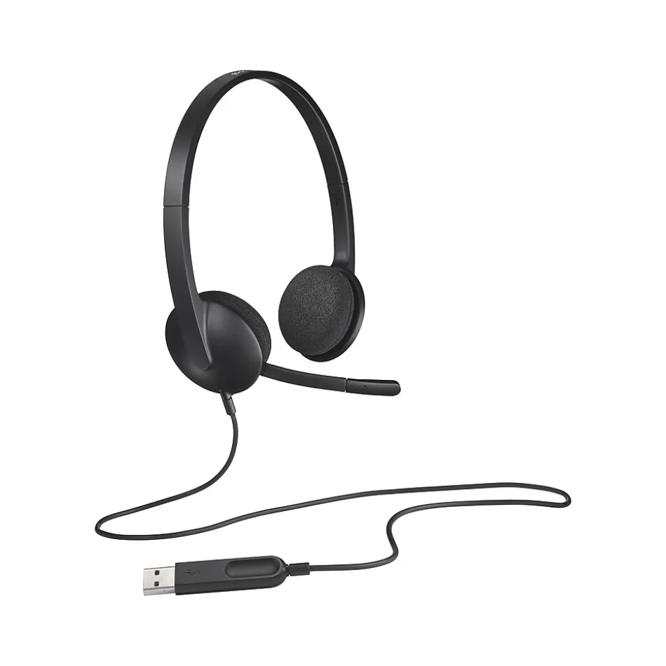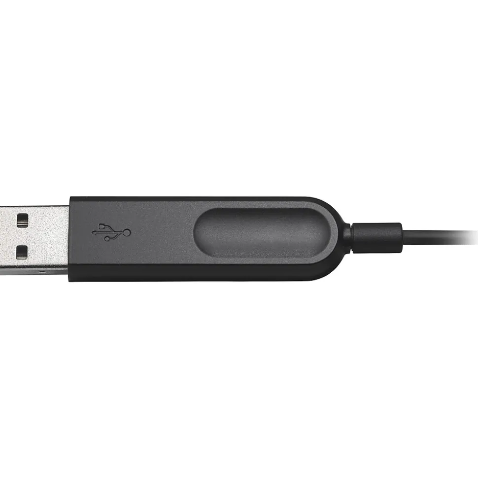 Listen to calls, games and music with this headset that features high-quality stereo sound. The rotating boom microphone, lightweight headband and soft foam ear cups on this headset are adjustable to enhance listening comfort. This versatile plug-and-play USB headset does not require additional software and works with most operating systems and popular calling applications. This Logitech headset has a 5.9-foot cable providing the freedom to stand and move around during conversations.