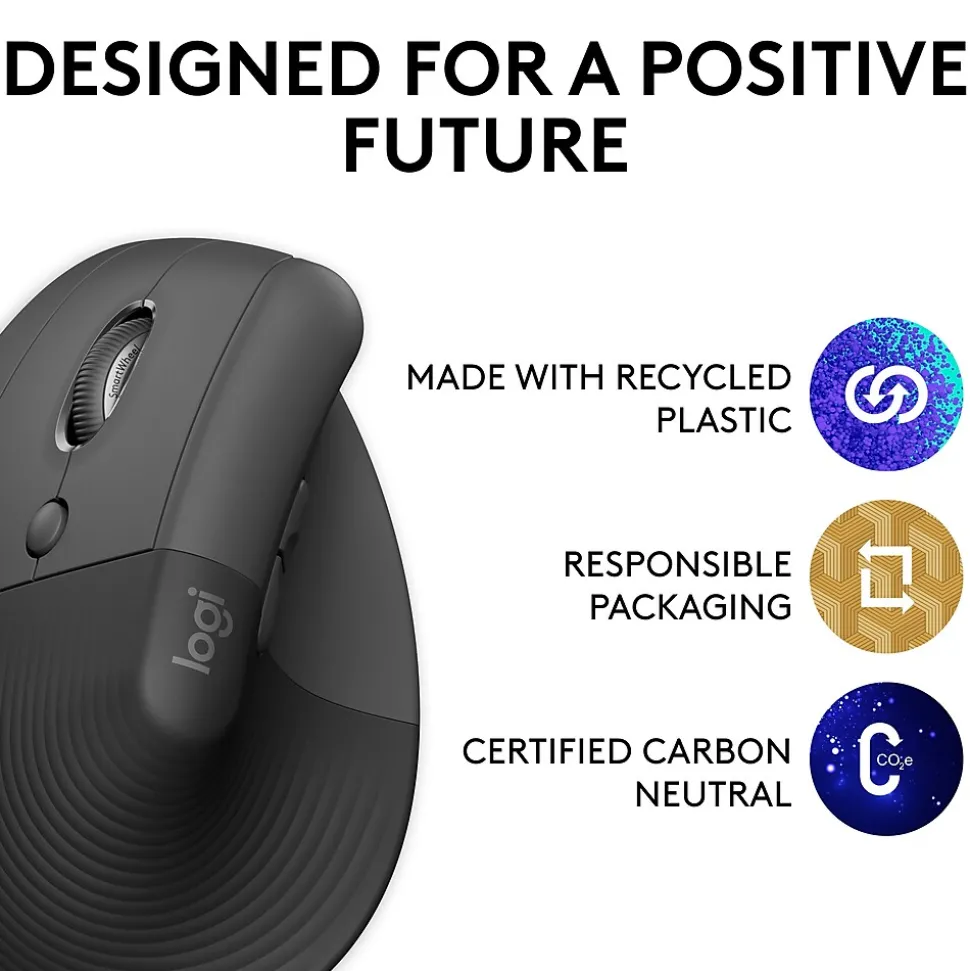 When the desk life gets you down, lift yourself up. A great fit for small to medium hands, Lift Vertical Ergonomic Mouse is crafted for comfort from first light to late night – with an option for left hands. Raise your hand into instant comfort with a soft rubber grip and cozy thumb rest. Realign into a more natural posture at 57°. And feel focus flow from morning to night with productivity features designed to suit your working style. Connect easily to up to 3 devices via Bluetooth or Logi Bolt, and enjoy up to 2 years’ battery life in a single AA battery.