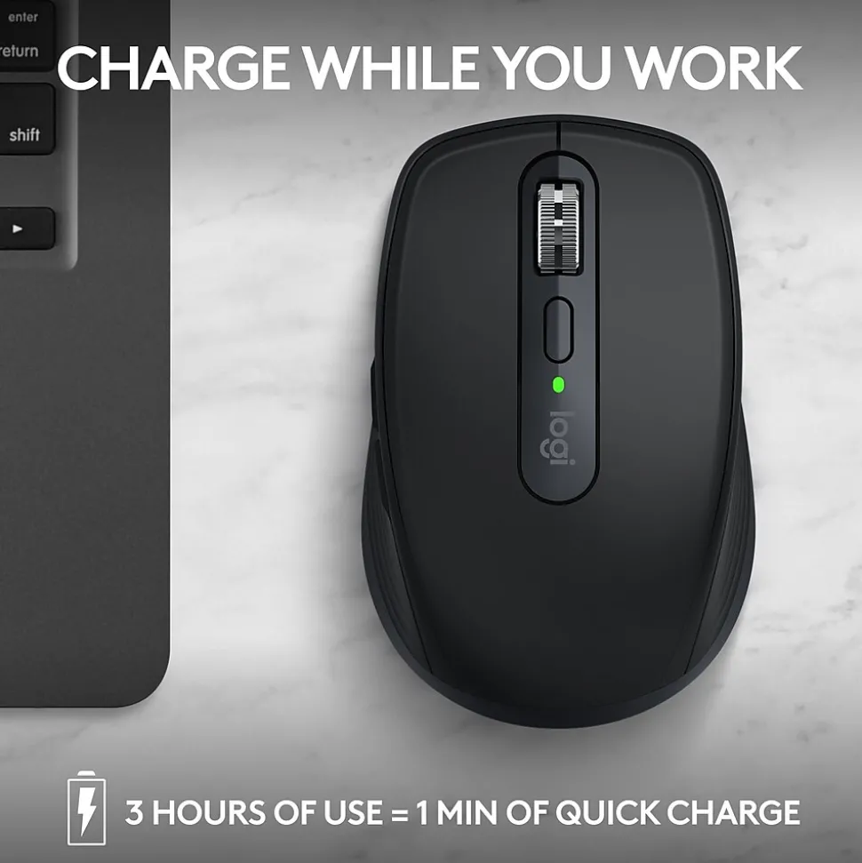 Introducing the Logitech MX Anywhere 3S, a beloved compact wireless mouse with next-level precision and control. Now with Quiet Click buttons that deliver a satisfying tactile feel with less click noise (compared to MX Anywhere 3). The MX Anywhere 3S also comes with an 8000 dpi optical sensor for next-gen responsiveness on any surface, including glass (0.16″ minimum glass thickness). MagSpeed electromagnetic scrolling delivers remarkable speed, precision, and near silence, with the ability to scroll 1000 lines per second. The low-profile design is contoured for your hand. The Logi Options+ app enables Flow cross-computer control and introduces more customizations than ever. The MX Anywhere 3S stays powered up to 70 days on a full charge and delivers three hours of use from a one-minute quick charge.