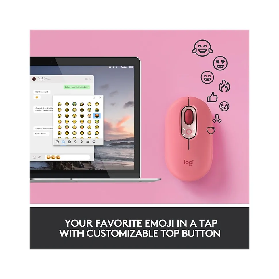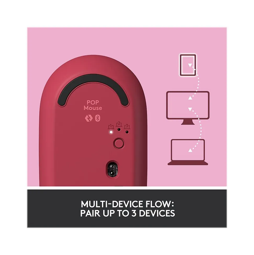 Get to know the playful wireless Logitech POP mouse designed to make personality shine on your desktop and beyond. Pick the Logitech POP mouse you love most from the range of designs, and make it your own with fun emoji customization. With SilentTouch clicks, and a battery life of up to 24 months, take it anywhere you go. Connect the mouse to your desktop, laptop, or tablet using Bluetooth on Windows, macOS, iPadOS, and Chrome OS. Glide between up to three devices at a time with Flow, and shift instantly from the high-precision to speed scroll mode with the SmartWheel.