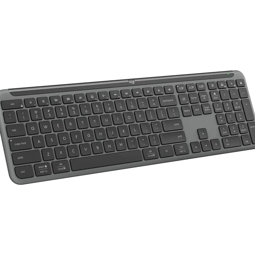 Make work-life magic with the Logitech Signature Slim K950, a keyboard that lets you switch between your computer, tablet and phone and enhances your productivity with customizable keys and shortcuts. Signature Slim K950 is a keyboard that helps you manage it all by putting a little bit of magic at your fingertips. Seamlessly switch between your devices and customize your keys so whatever today asks of you, you can get it done.