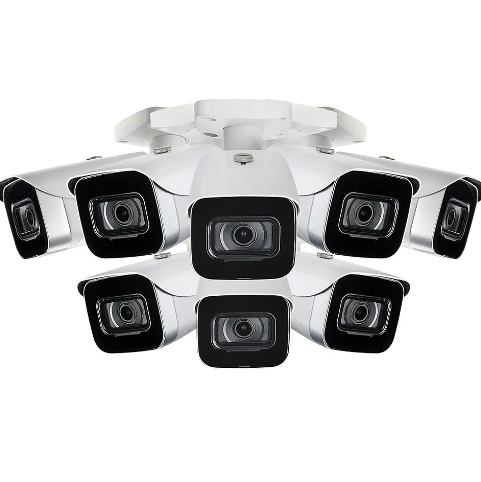 - Eight 4K E841CA series 8.0-MP IP cameras produce exceptionally sharp 4K video, realistic color representation, and digital zoom capabilities; HDR provides improved video clarity in high-contrast lighting to reveal details in extremely bright and dark areas in footage; adjustable resolution and FPS rates: 8.0 MP at 15 FPS and 5.0 MP, 1080p, or 720p at 30 FPS