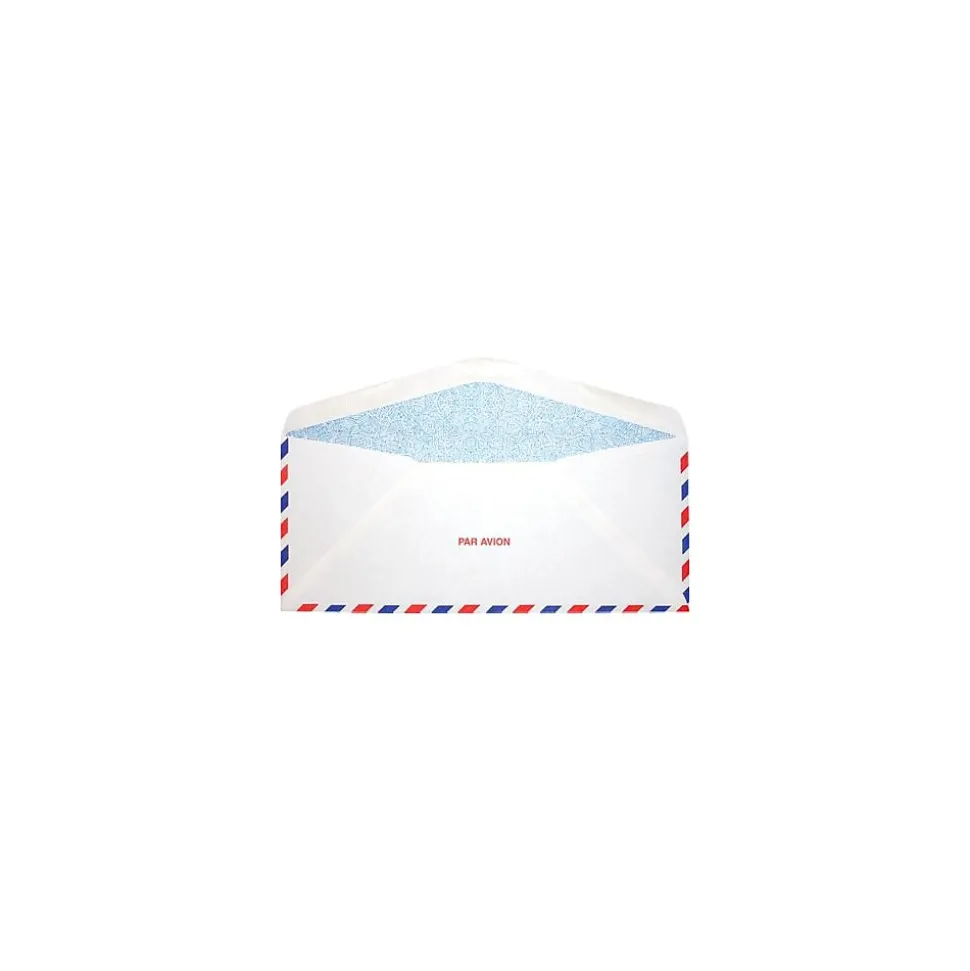 The #10 Envelope (4 1/8″ x 9 1/2″) in 20 lb. Airmail with Security Tint is a lightweight yet durable envelope, perfect for airmail letters, invoices, or cards. Seal by moistenable glue along flap. Available either plain or printed.