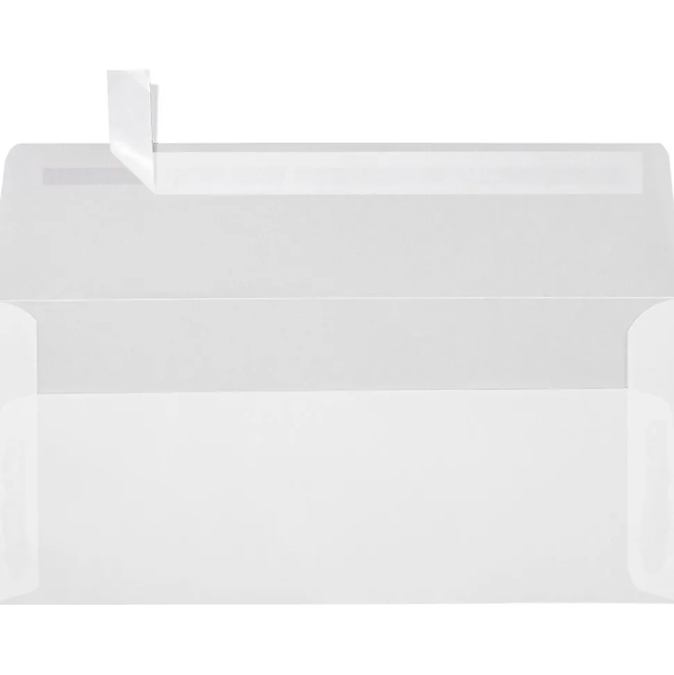 LUX® Size 10 square flap envelope in clear translucent color has press and peel design for secure sealing. 4 1/8″ x 9 1/2″ Envelope compatible with laser printers has 70 lbs paper weight and is sold as 250 per box.