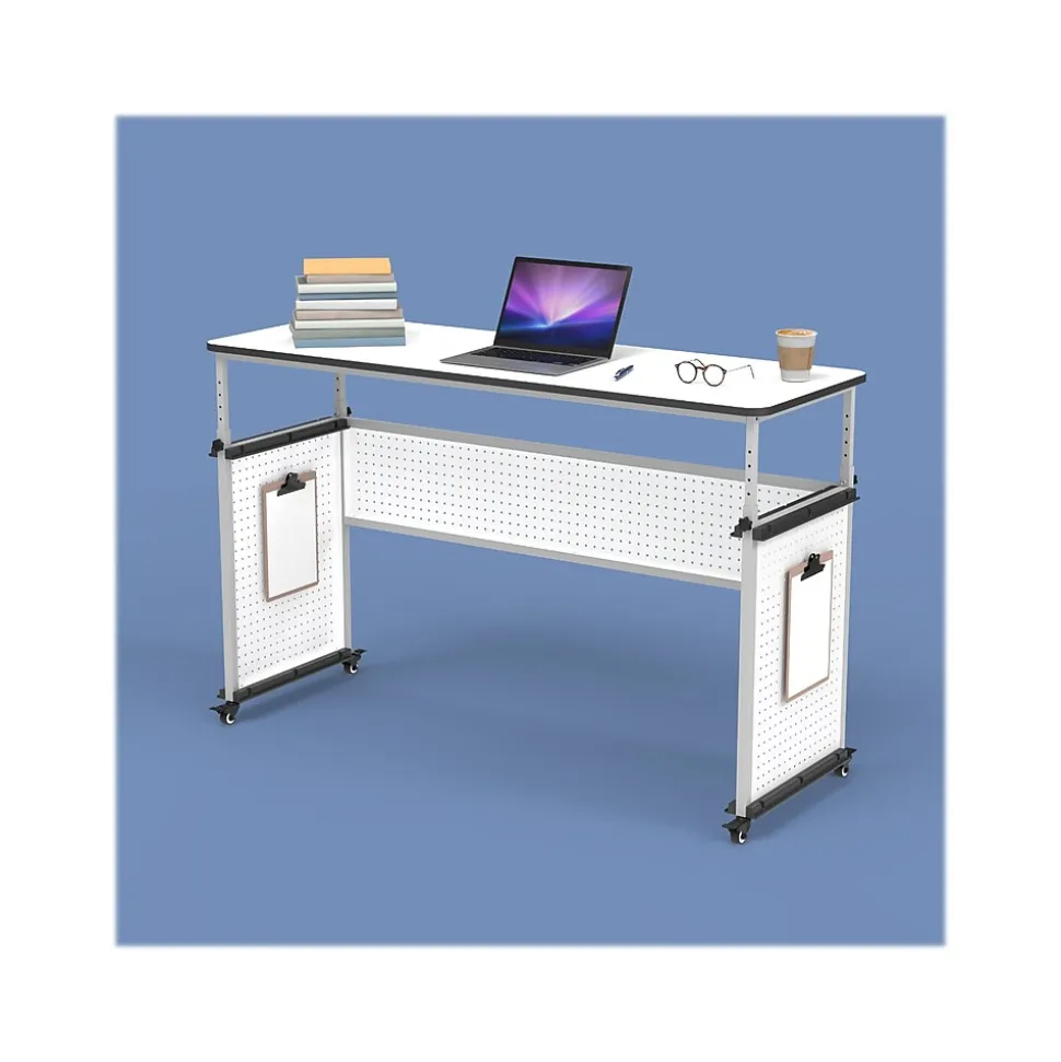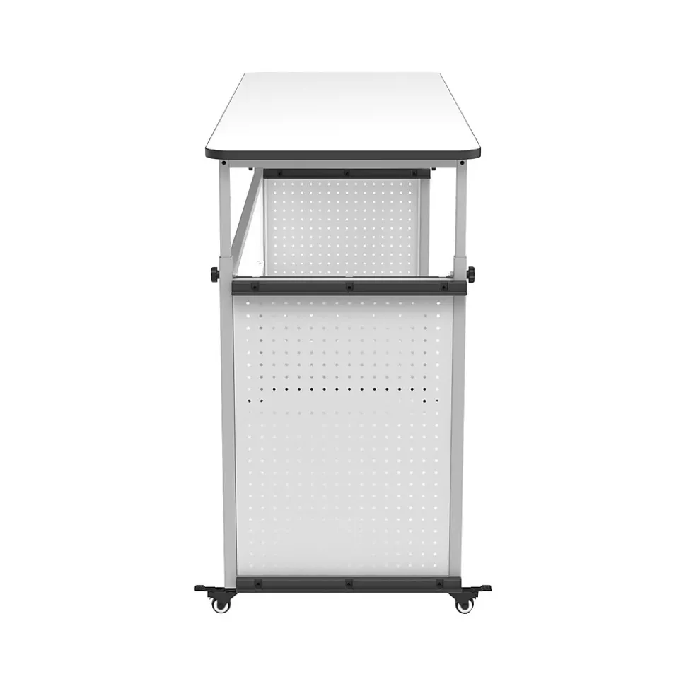 The teacher who stands in front of a chalkboard all day is a relic of the past. Today’s educators lead engaging, hands-on activities where students learn by doing, making, and exploring the limits of their imaginations. Recognizing how much instruction has evolved, Luxor created this modular teacher desk to meet modern classroom needs. Designed primarily as a teacher table, it features a multipurpose design that also makes it an excellent choice as a science lab table or training table. Highlights include a chemical-resistant top, tool-free adjustable height, a modesty panel, and multiple built-in pegboards. Integrated connection rails, meanwhile, make it easy to connect compatible Luxor MBS series modular storage cabinets and bookshelves to create custom classroom solutions. Full-swivel, lockable casters provide easy mobility.