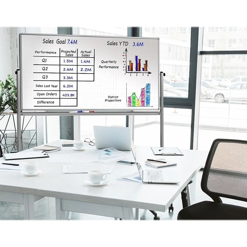 - Reversible board easily flips for twice the writing area