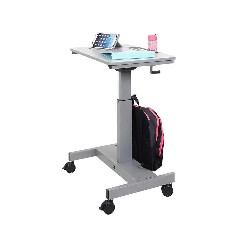 Encourage your child to stand during homework sessions with this standing student desk. The steel construction and high-pressure laminate surface provide long-term durability, and the crank handle easily adjusts height from 29 to 42 inches. This Luxor Student desk has pencil storage and a water bottle holder, and backpacks can be hung on the included hook.