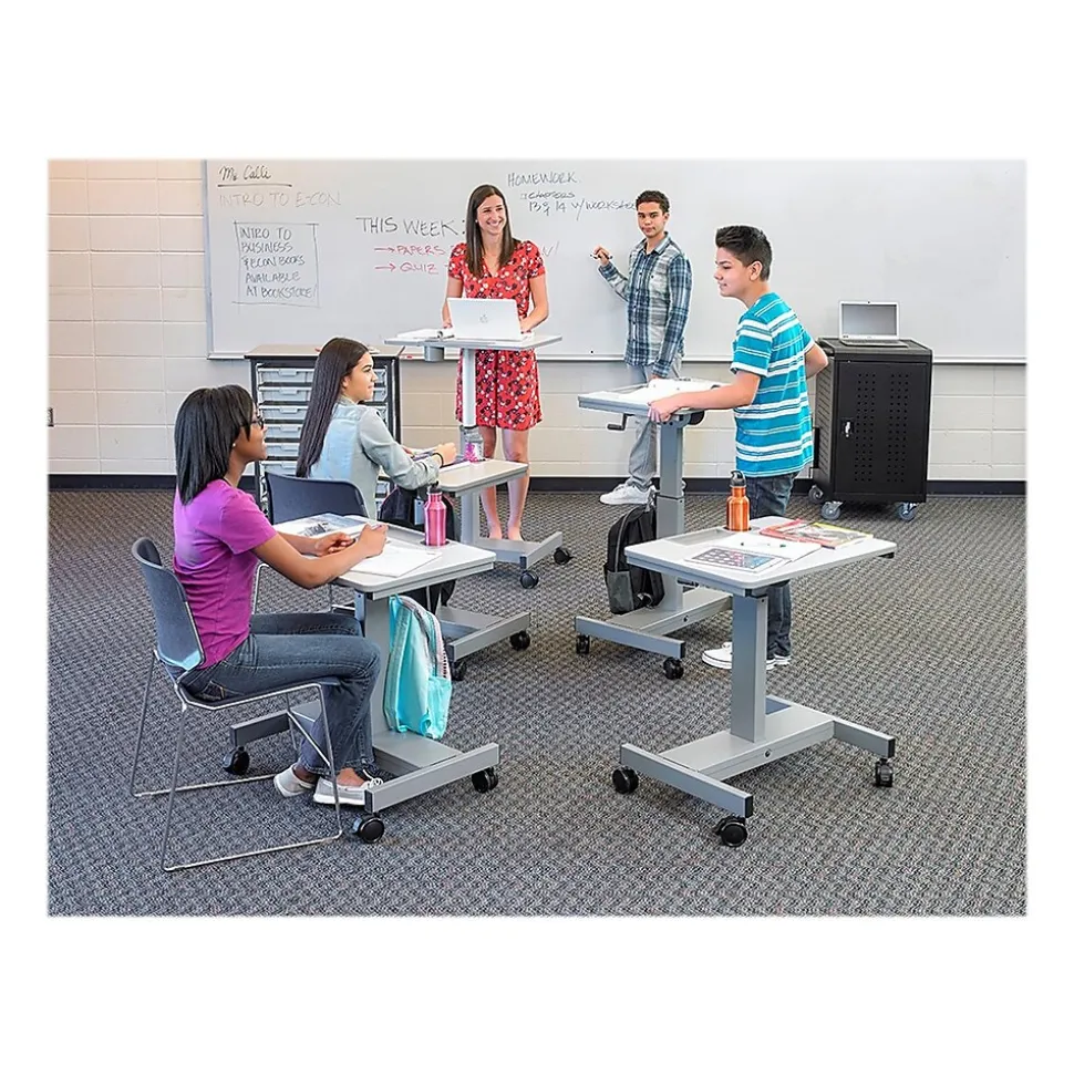 - Four casters, two with locking brakes, provide classroom mobility for greater collaboration