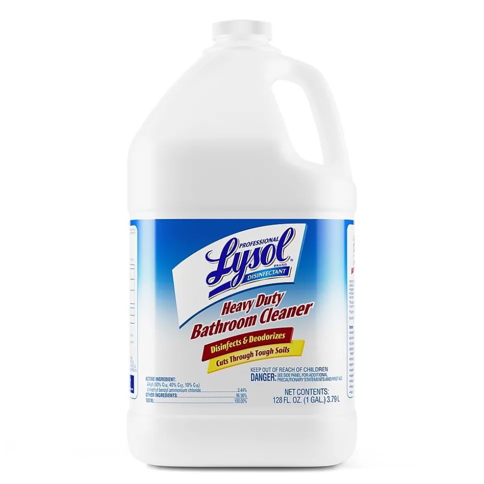 Arm your cleaning staff with the cleaning action of Lysol® Professional Disinfectant Heavy Duty Bathroom Cleaner. Kills 99.9% of viruses and bacteria (including Rotavirus WA) when used as directed on hard, non-porous surfaces. Create dazzling commercial restrooms with a product that works on sinks, toilet bowls, shower stalls, and glazed tile. Maintain cleaning protocols in high-volume facilities with a concentrated formula that’s easy to dilute. Reduce how often you have to restock janitorial supplies with the concentrated formula.
