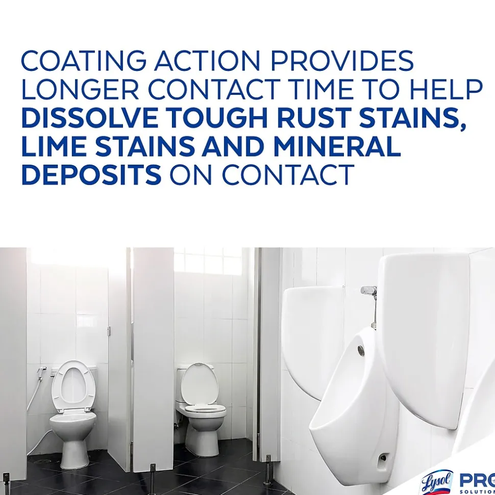 Optimize restroom cleaning time with a thick 9.5% hydrochloric acid formula that works through the toughest toilet stains in seconds and coats above and below the waterline. Lysol® kills 99.9% of viruses and bacteria when used as directed.