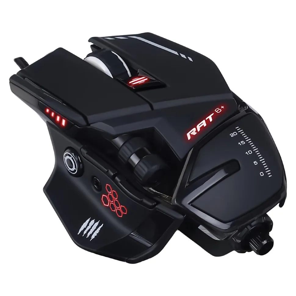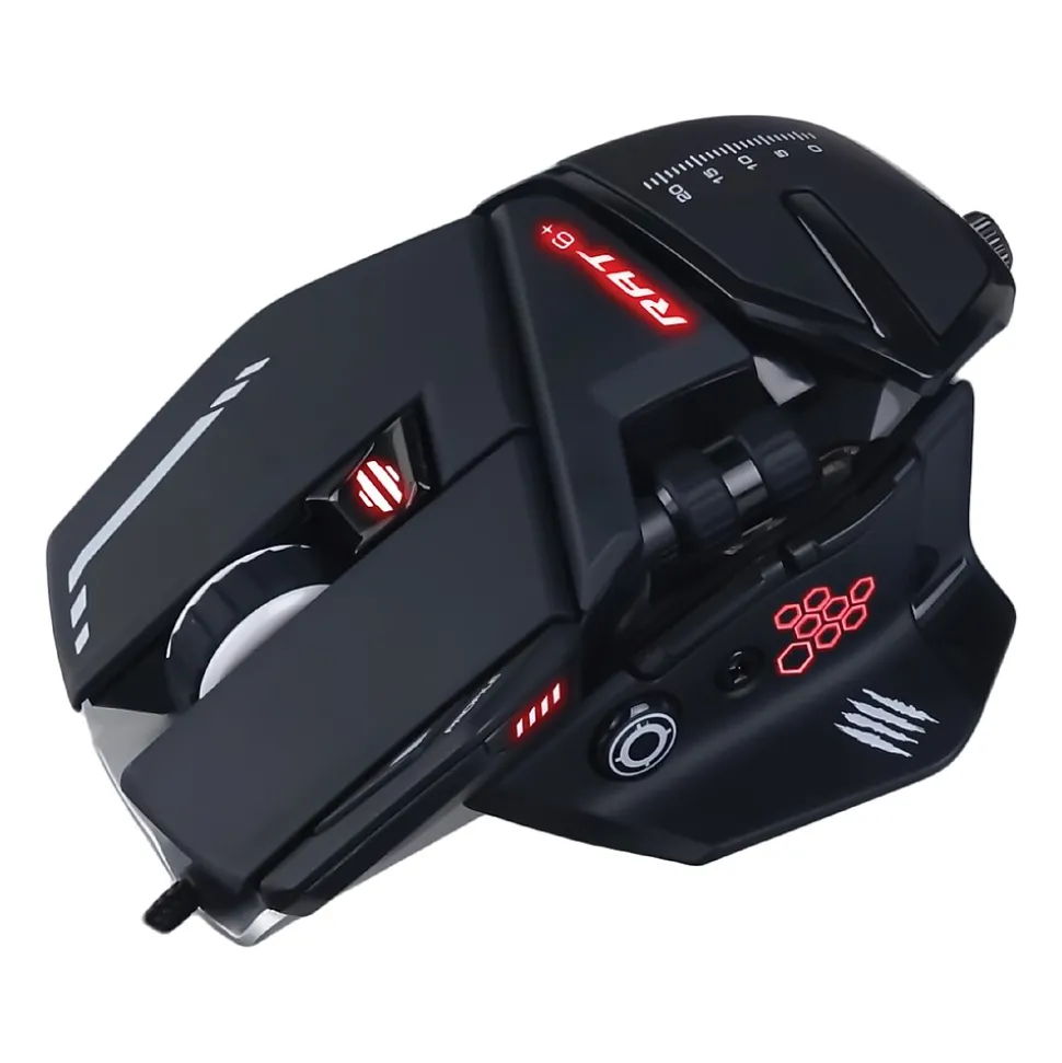 The R.A.T. 6+ gaming mouse from MAD CATZ is built with an aluminum structure, featuring an exceptional gaming-grade optical sensor, adjustable palm rest, and 11 programmable buttons. The R.A.T. range is precision engineered with adjustable key components to enhance your gameplay experience. R.A.T. 6+ features the signature adjustable palm rest and has been expertly engineered to accommodate grip, claw, or fingertip style play, delivering ultimate gaming comfort even in the heat of battle. The adjustable weight system of R.A.T. 6+ enables you to adjust the weight between 4.23 oz. to 4.97 oz. (120 g to 141 g) and fine-tune the balance to fit your preferred style of play. Make your mouse as individual as you are with the power of the R.A.T. The mouse is armed with a gaming-grade Pixart PMW 3360 optical sensor, featuring a 4-level DPI switch from 800 to 12000 DPI and delivering movement speeds of up to 150 in. per second. The R.A.T. 6+ has been crafted for the fast-paced gameplay of today’s competitive gaming, giving you the edge you need to win! Program your favorite commands and macros to each of the 11 buttons and save them to 3 individual profile slots on R.A.T.6+. All your moves for the games you play the most, right at your fingertips when you need them. R.A.T. customization goes beyond physical adjustment. Regardless of your preferred genre or style of play, every aspect of the sensor, button configuration and lighting can be tweaked to enhance performance.