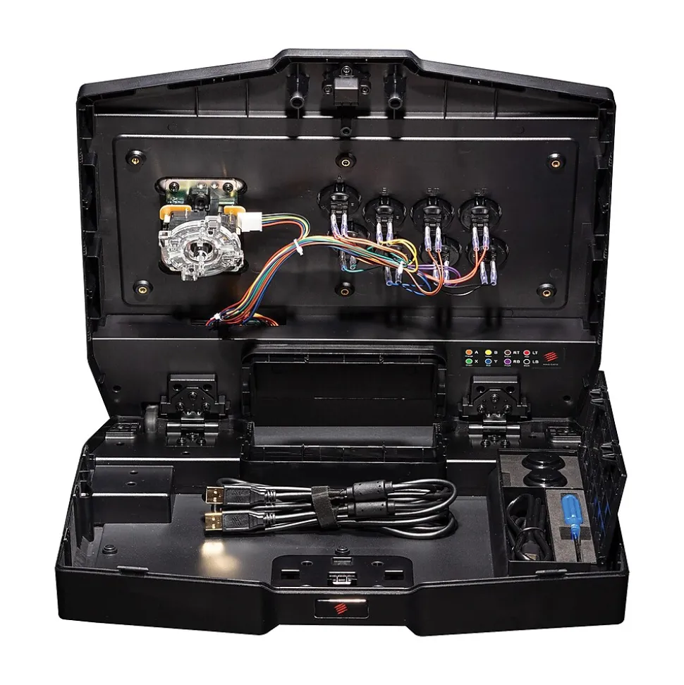 The Mad Catz T.E.3 Arcade Fight Stick is the true inheritor of the legendary T.E.2 arcade stick. The genuine Arcade Layout provides a Vewlix-style design with 8 action buttons that provide extremely accurate performance. The durable Sanwa Denshi parts support fighters to drain every drop of hit points from the enemy. The easy-to-mod chassis lets you access the inner component replacement. Apart from that, swapping the custom artwork is facilitated by the removable top panel. The enhanced internal storage space holds your extra gaming gear, repair tools, and gives you a hassle-free way to carry additional tool cases or bags. The high-quality original push button is by Sanwa from Japan. Snap-in installation, easy-to-replace existing parts, and build-your-own custom controller make this a do-not-miss. The T.E. 3 has a convenient pass-through shoulder strap or carry handle attachment.