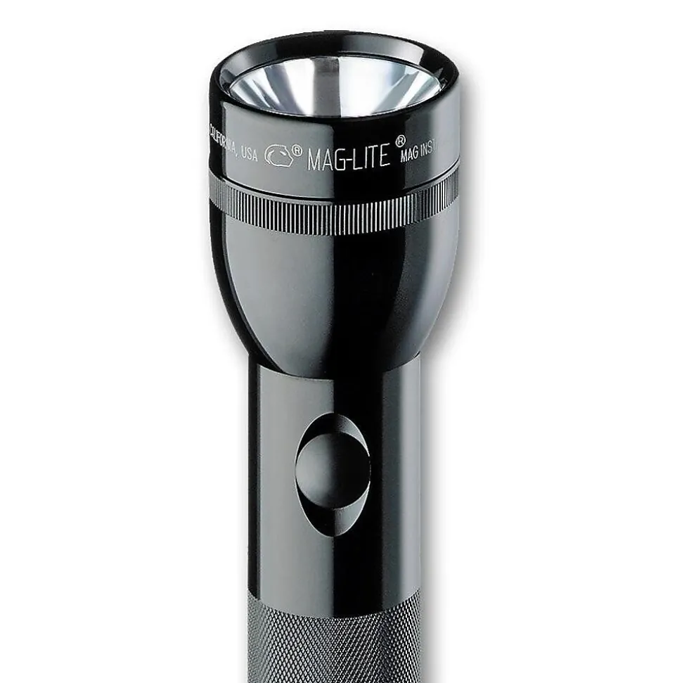 MAG-Lite® Standard flashlight in black color has krypton bulb and delivers high intensity light beam. Flashlight requires 5 D-alkaline 7.5 VDC batteries to operate and features an O-ring seal for water resistance.