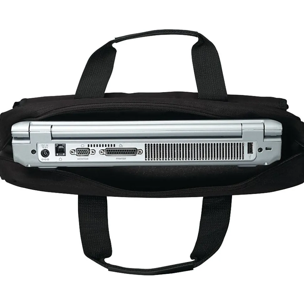 Manhattan® 15.6″ London notebook computer briefcase includes strong dual strap handles, nonslip shoulder strap for easy transportation. Briefcase is lightweight, water resistant, durable and enables a quick packing with its top-load configuration.