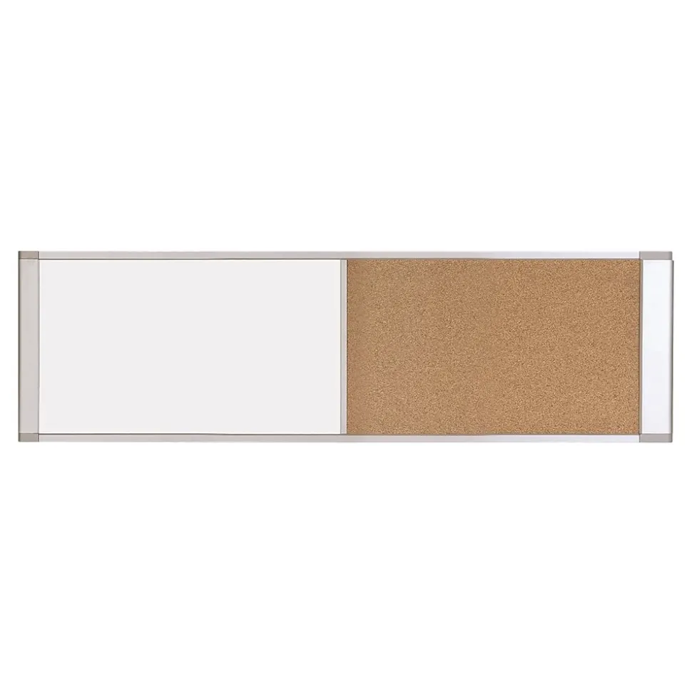 - Combo dry-erase and cork bulletin board offers a variety of messaging options