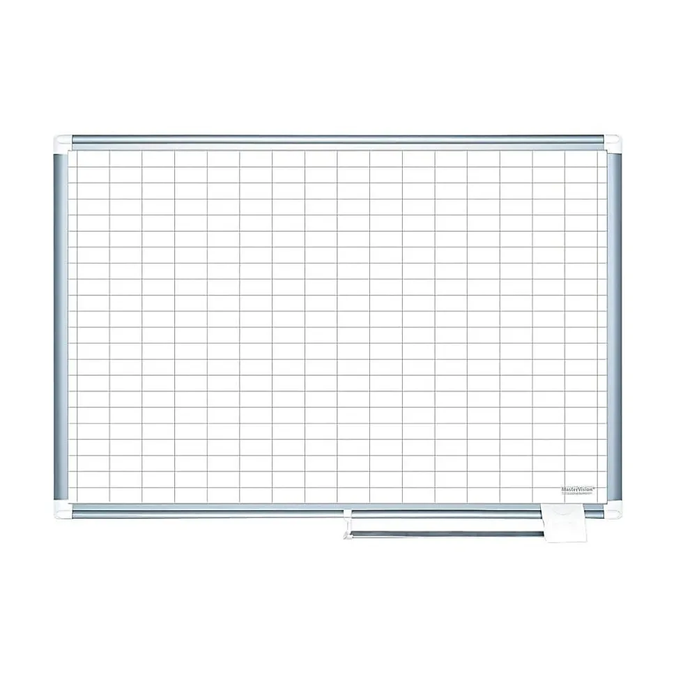 Create lists and presentations or simply draw with this grid aluminum-frame dry-erase board. The mounting hardware is included, so setting up and getting started writing is quick and simple, and the aluminum construction of the frame holds everything securely together. This MasterVision Platinum Plus grid dry-erase board features a sliding pen tray to store pens and accessories for convenience.