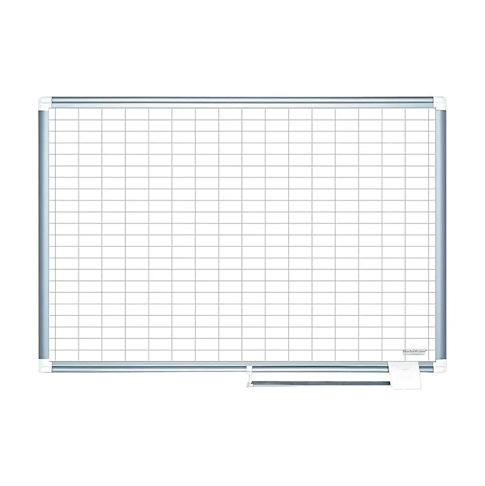 Get projects planned and organized with this aluminum-framed dry-erase grid board. The grid ruling makes it easy to draw charts, graphs, and other detailed work with precision, and the surface is great for dry-erase makers, letting staff easily wipe it clean. This MasterVision Platinum Plus grid dry-erase board features an aluminum frame that provides durability and holds everything securely together.
