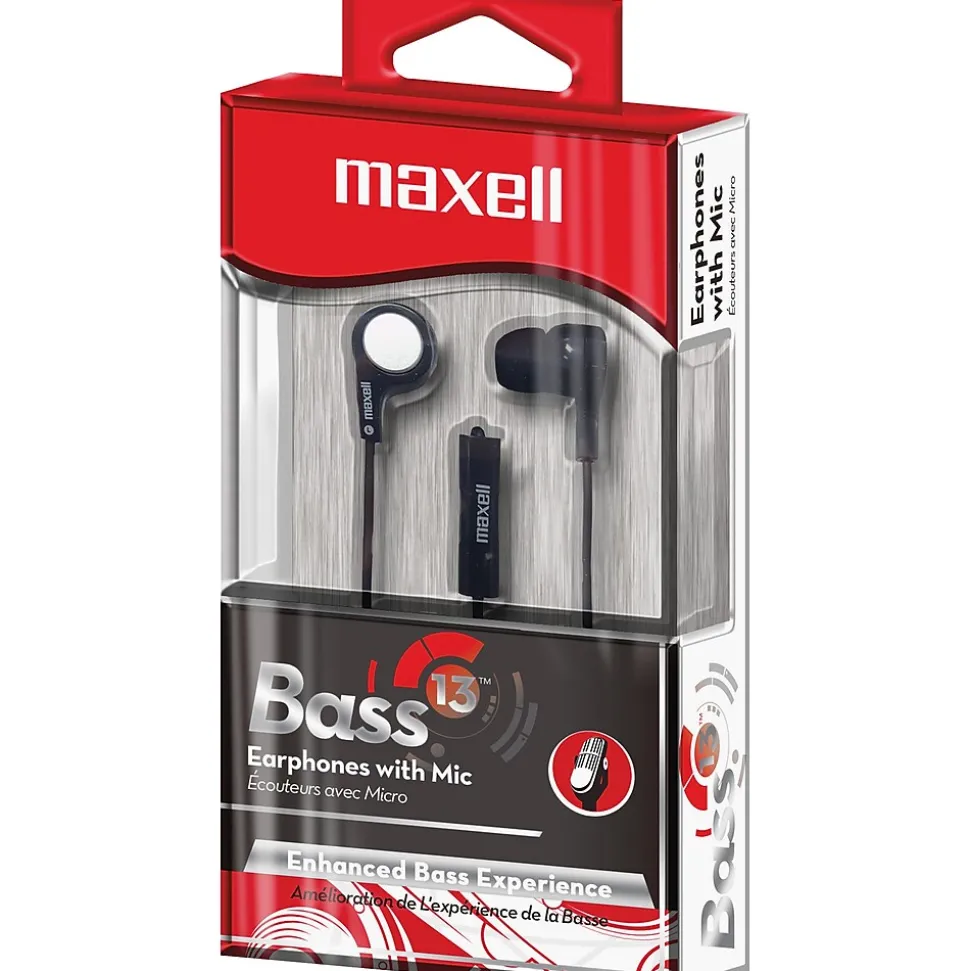 This Maxell Earset delivers high quality sound at a low price. The earphones include a built-in mic so you can take calls from anywhere. Heavy bass earbud with mic offers copper coil technology to provide increased bass response. The b-13 provides crystal clear highs and a full range of mid level sound, as well as dynamic heavy bass. Inline mic for taking/making calls. Includes soft touch eartips for extended wear.