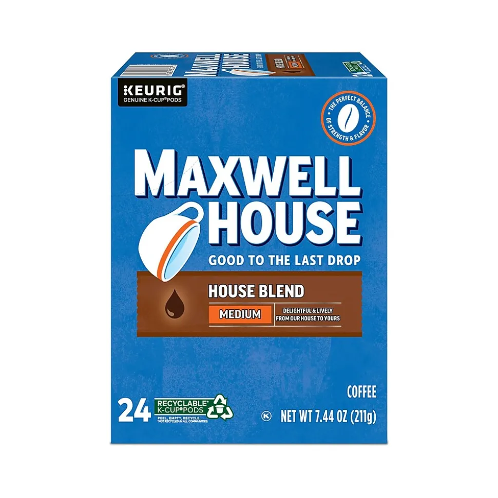 Seize the day with the Maxwell House House Blend single-serve K-Cup pod. This well-known company makes an assortment of special blends with custom-roasted 100% arabica beans. The signature Maxwell House taste is created through a process that hasn’t been done the easy way, but the right way, for more than 125 years. This Maxwell House K-Cup pod delivers coffee with a rich, full flavor that’s good to the last drop. Each sip delivers a smooth, balanced, and flavorful profile. Made for use with Keurig K-Cup pod coffee makers. The convenient K-Cup pod helps you get your morning off to a delightful and tasty start. Maxwell House’s coffee was first served to guests of Nashville’s Maxwell Hotel in 1892. After running out of the coffee, the hotel had to return to their usual brand of coffee, to the dismay of their guests. The patrons loved Maxwell House’s coffee so much they complained to the hotel, and soon Maxwell House coffee became the only coffee served at the hotel. That’s how Maxwell House got its name, and their coffee has been good to the last drop ever since.