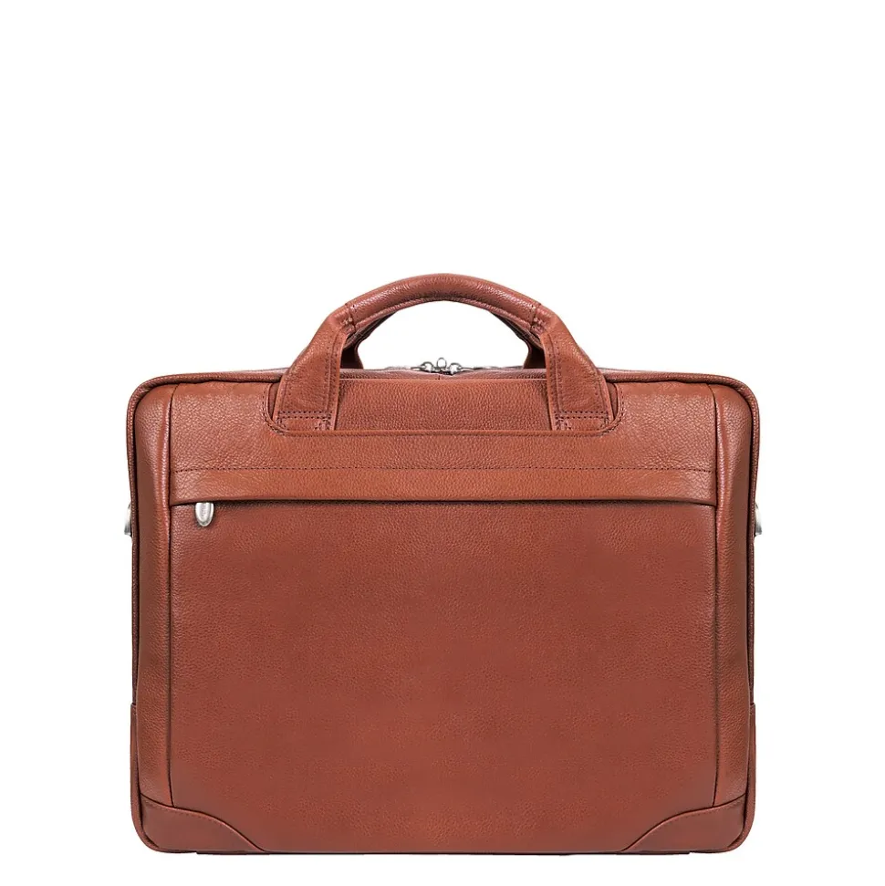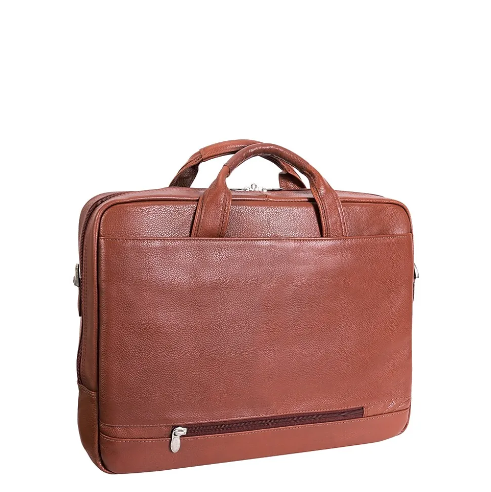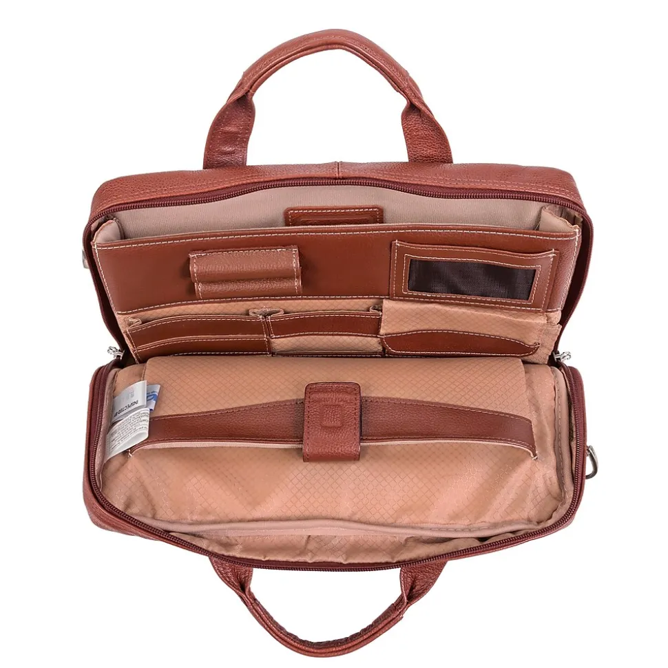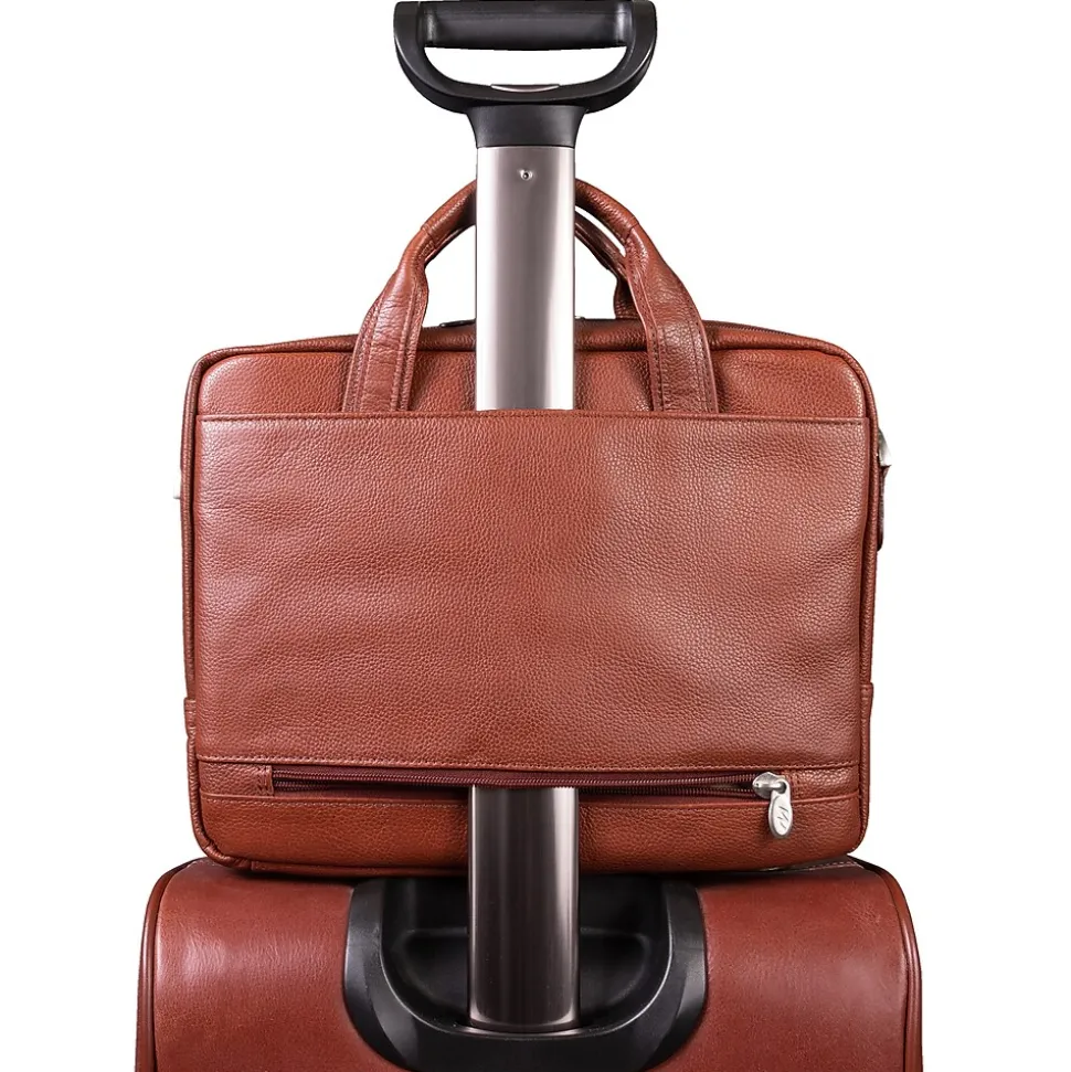 Front zipper pocket holds small accessories. Main zipper compartment features an interior organizer for pens, business cards and small devices. Main zipper compartment features one file pocket. Main compartment also features a built in padded laptop sleeve that fits and protects most laptops up to 13.3 inch screen Dimensions. Adjustable, non slip, shock absorbing shoulder strap alleviates body strain. Smart Zipper Attachment System allows you to piggy back your case on the extended handles of other rolling cases.