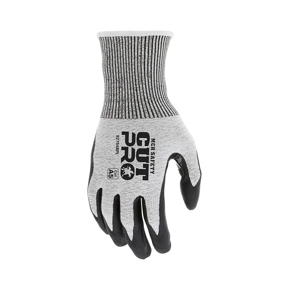 The MCR Safety Cut Pro series offers various cut protection levels at a competitive price. This pair of cut-resistant work gloves features a 13-gauge Hypermax shell that is long-lasting and cool, providing a comfortable glove option that works as hard as you do. The shell possesses excellent cut resistance combined with a rugged bi-polymer palm coating, making this pair of gloves suited for a variety of tough applications. Provides gripping power that’s sure to make your work day better. A reinforced thumb crotch adds strength and additional wear to this popular glove style. If you are looking for a pair of highly cut-resistant work gloves, look no further than MCR Safety Cut Pro.