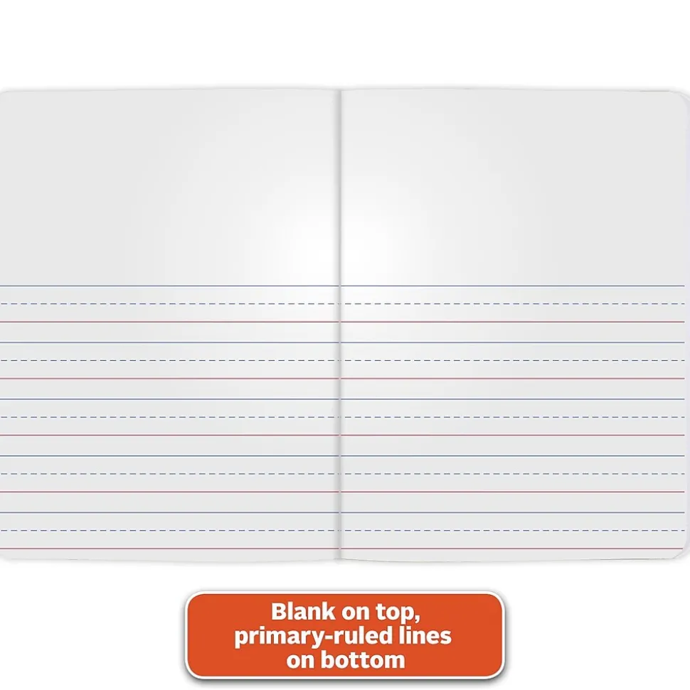 Create stories and draw pictures with this white primary journal. The wide-ruled spacing and guide marks help children learn how to write letters, while the large margin at the top of each page provides plenty of room for writing titles and creating illustrations. This Mead Grades K-2 Primary Journal wide-ruled primary journal conforms to Zaner-Bloser, McDoughal Littell and D’Nealian handwriting methods, making it ideal for use in kindergarten, first grade, and second grade classrooms.