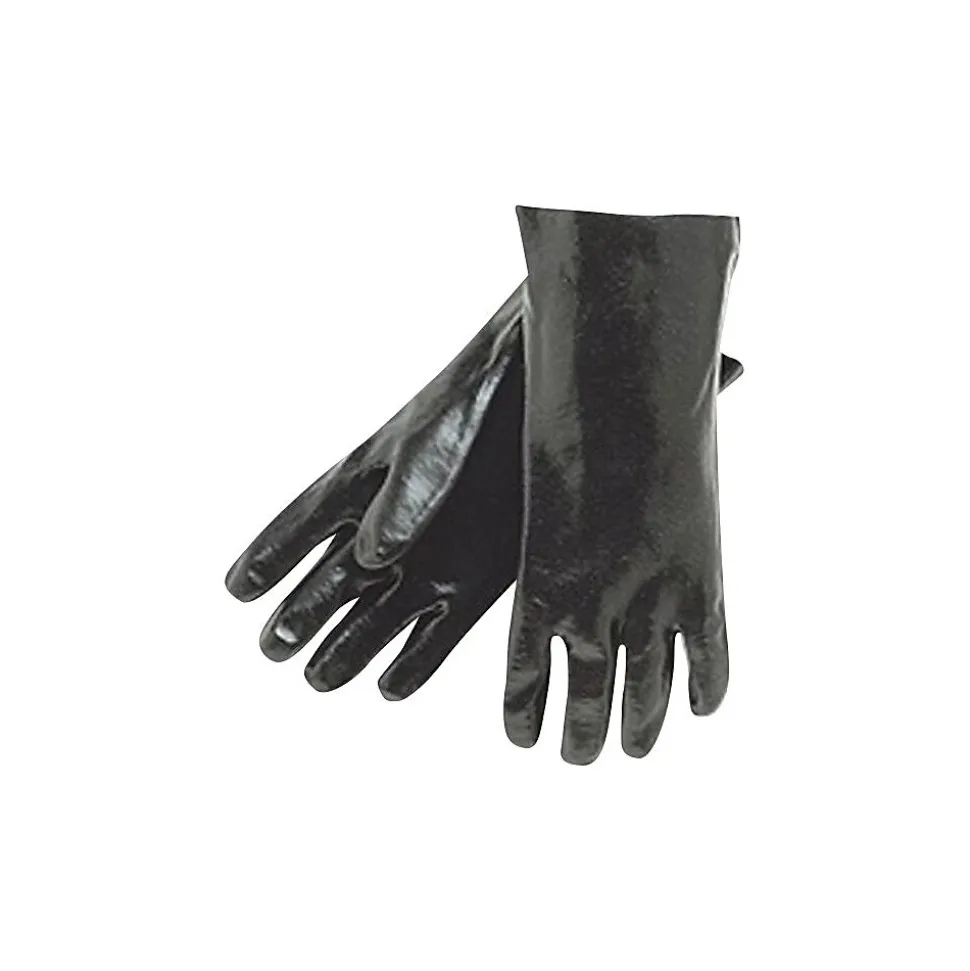 Memphis Gloves® 12″ Large dipped gloves with gauntlet cuff in black color feature PVC rough finish for durability. Gloves are oil, grease, caustics, acid or solvent, chemical resistant and come with interlock lining for enhanced comfort.
