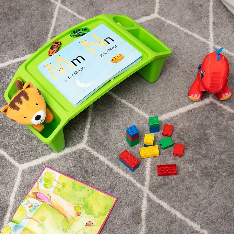 Introduce convenience and portability into your child’s routine with this set of two portable lap desks. A versatile solution for kids who need a stable surface for various activities, from playing and drawing, to snacking or using a laptop or tablet. Ideal for use on the couch, bed, or floor, these lap desks can turn any place into a comfortable workstation, making them perfect for sick days, rainy days, or everyday use.Despite their robust construction, these lap desks are incredibly lightweight at just 1.2 lbs (0.07 kg), making them easy to move from room to room or take along on vacation. With three side pockets, they offer additional storage space for keeping essential items within reach during or after playtime.Spills can be quickly cleaned with mild dish soap and warm water, while the built-in channel around the desktop prevents minor spills from spreading.These lap desks are an ideal surface for a variety of tasks, from creating art and doing schoolwork to eating meals and more. They make an excellent gift for budding artists or any child who could benefit from having a comfortable, portable table for snacks, reading, crafts, and other activities.
