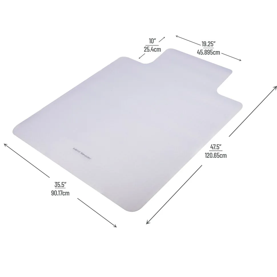 - Oversized: Designed to accommodate various seat sizes, this easy-glide PVC mat is oversized, measuring 47.5 inches long x 35.5 inches wide x 0.1 inch tall (121.9 x 91.1 centimeters), providing ample coverage for your workspace