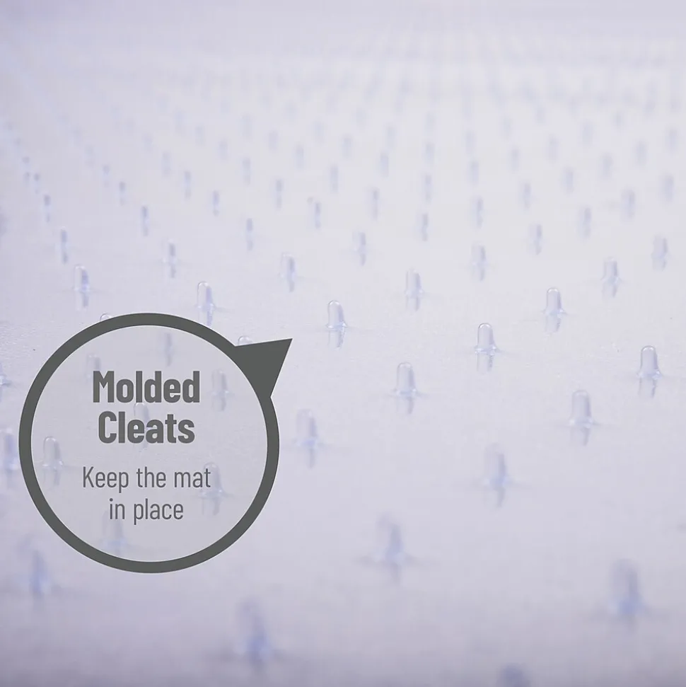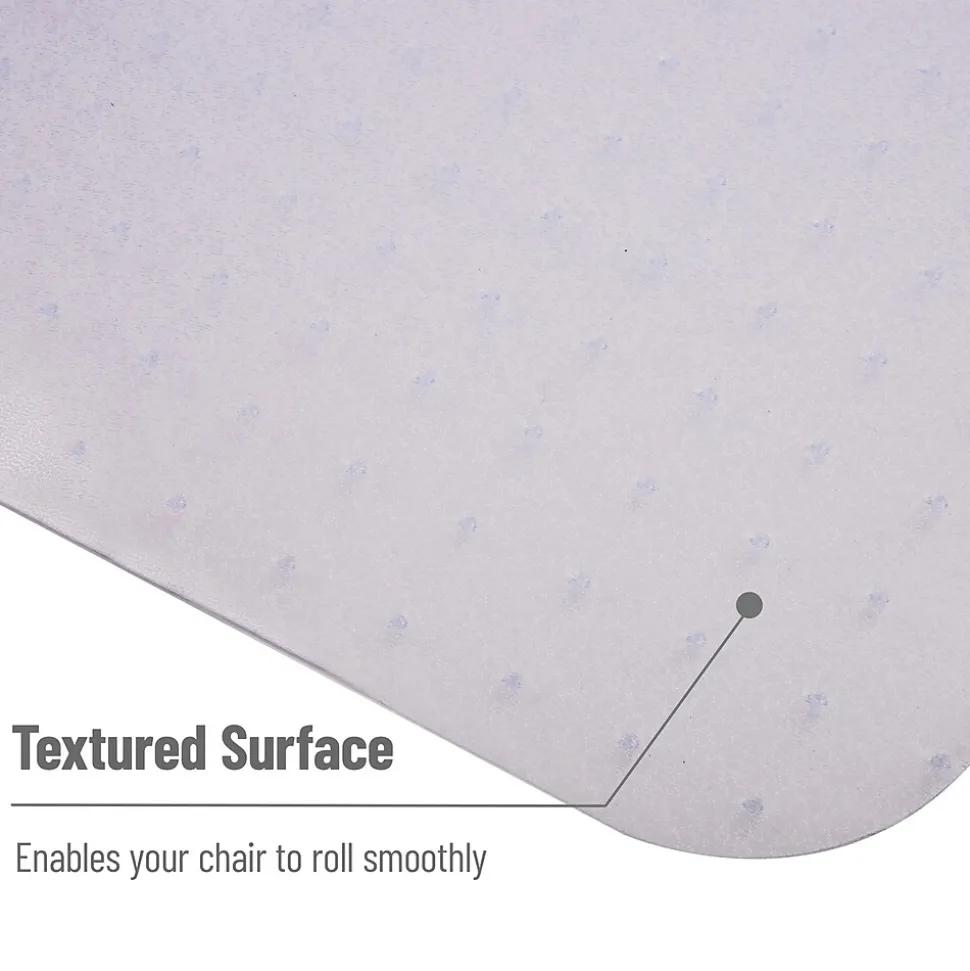 This PVC floor mat not only allows you to move freely in your workspace but also provides you with the comfort you need while working. Specifically designed for low pile carpeting, the mat features molded cleats that ensure it stays in place no matter how much you move around.Crafted from flexible PVC, this office mat boasts durability and longevity. With it, you can say goodbye to the constant need to replace thin, torn, or cracked mats. Maintaining the mat is as simple as wiping it with a soft cloth and mild soap and water.One of the best things about this mat is that it ships flat, meaning it’s ready for immediate use with no assembly required. This durable office mat would make a great gift for anyone who wants to enhance their comfort and productivity in their workspace.