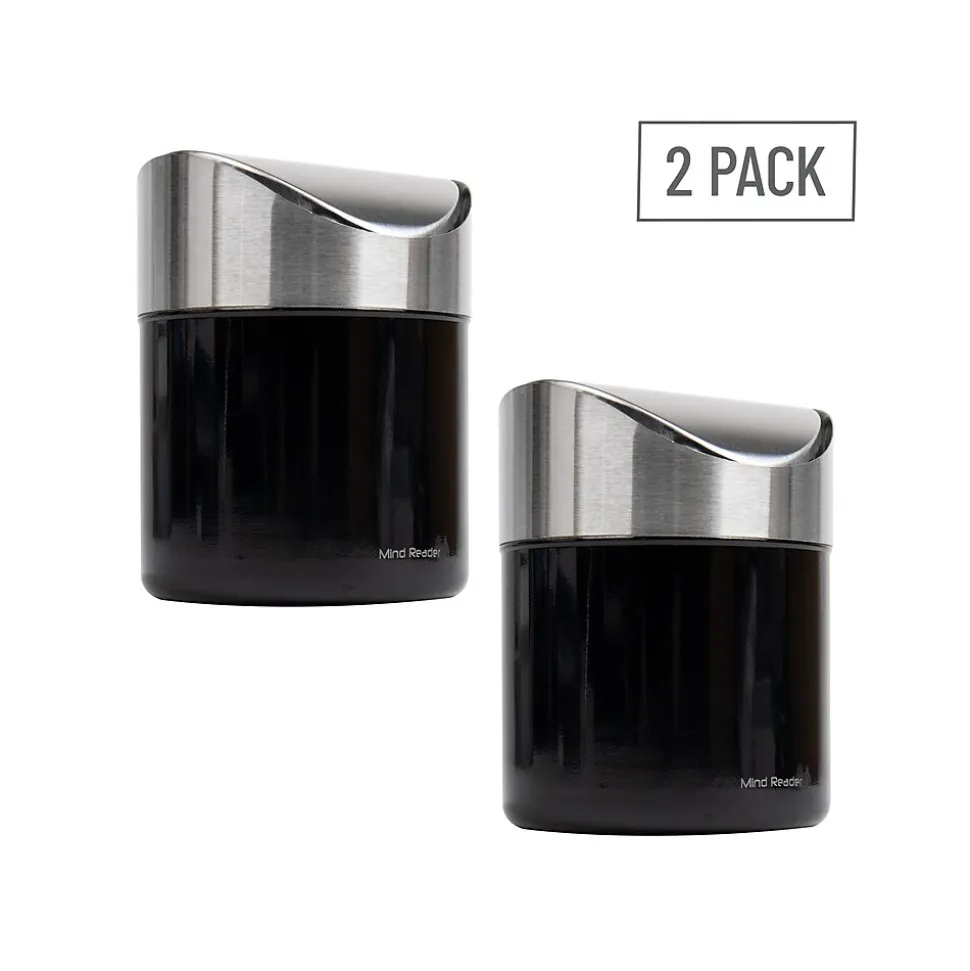 Introducing the perfect solution to pesky small pieces of trash, the compact countertop trash can. Finished in a fingerprint-resistant satin, this trash can effortlessly fits into any decor, making it a great addition to any home or office.Are you tired of having to walk to a larger wastebasket to discard small items? This compact trash can sits neatly on your desk, allowing for easy disposal of unwanted papers, coffee stirrers, single serve coffee pods, or other small pieces of trash. Standing just over 6 inches tall, it fits perfectly in any small space. It’s excellent for composting under a sink or cabinet or for recycling paper on your work desk.With this set of 2 compact trash cans, you can conveniently place one in another room or office. Ideal for breakrooms, they can be set up next to the coffee station for easy garbage disposal. The second trash can fits nicely in the bedroom or bathroom, discreetly holding discarded cotton swabs or balls, paper tissues, paper towels, and other frequently used items.These compact trash cans make excellent gifts for anyone needing a trashcan near their desk or for students heading to dormitories, where space-saving is always a priority. Make your life easier and neater with these compact countertop trash cans!