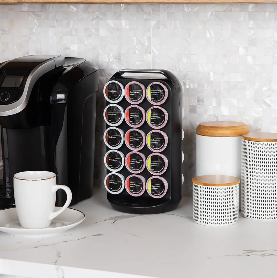 - Innovative and Secure Design: The countertop coffee pod carousel features a unique spinning design and a patent-pending self-locking feature, ensuring that the pods stay securely in place, even when tilted or moved